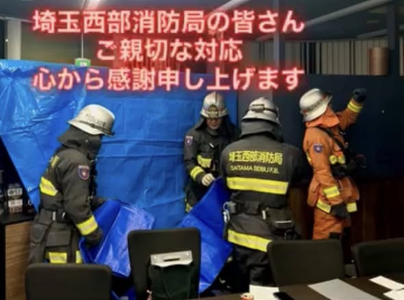 との一報!火災が発生している訳ではない様子…消防車両が集結し、多くの埼玉西部消防局 消防隊員の皆さんが駆け付けて下さいました