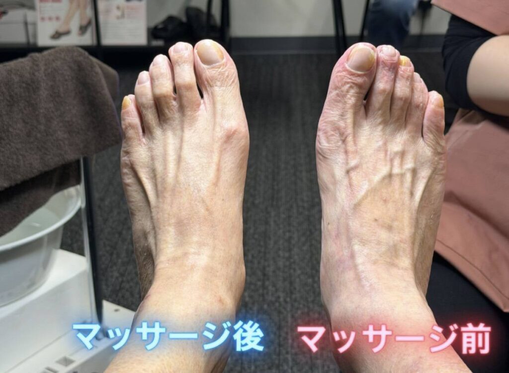 しかし…フットマッサージをしていただくと、画像を掲載しましたが、まるで若者のような肌色になっています!