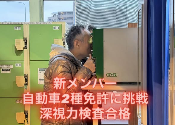 新メンバー職員が民間救急車・介護タクシー乗務に必要な、自動車2種免許に挑戦です!深視力検査も無事に合格 彼は優秀なので、オールマイティに活躍してもらおうと期待しています