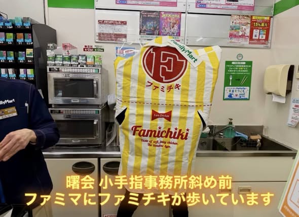 夕方に伺うとファミチキ気合販売中でした!店内にはファミチキが歩いています^^;ボクは鳥の唐揚げ大好きなんですが、油物の鳥の唐揚げかトンカツのいずれかを月に1回だけ食べる自分と約束をしています ファミチキ買わなくてごめんなさいm(_ _)m