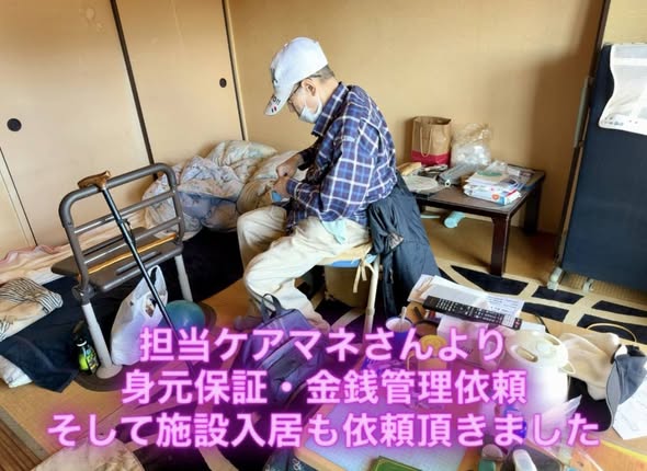 身元保証・金銭管理のご依頼でしたが、年齢の割に両下肢筋力低下により、独居生活困難と判断しご本人に施設入居を提案したところ、迷うことなく承諾されました 良い施設にご案内探しますね
