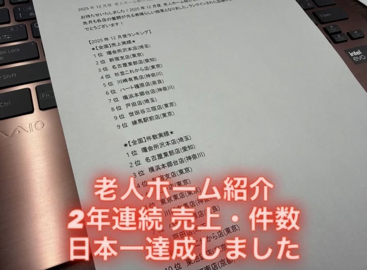 昨年12月のワントップジャパン全国老人ホーム紹介加盟店ランキングが発表されました