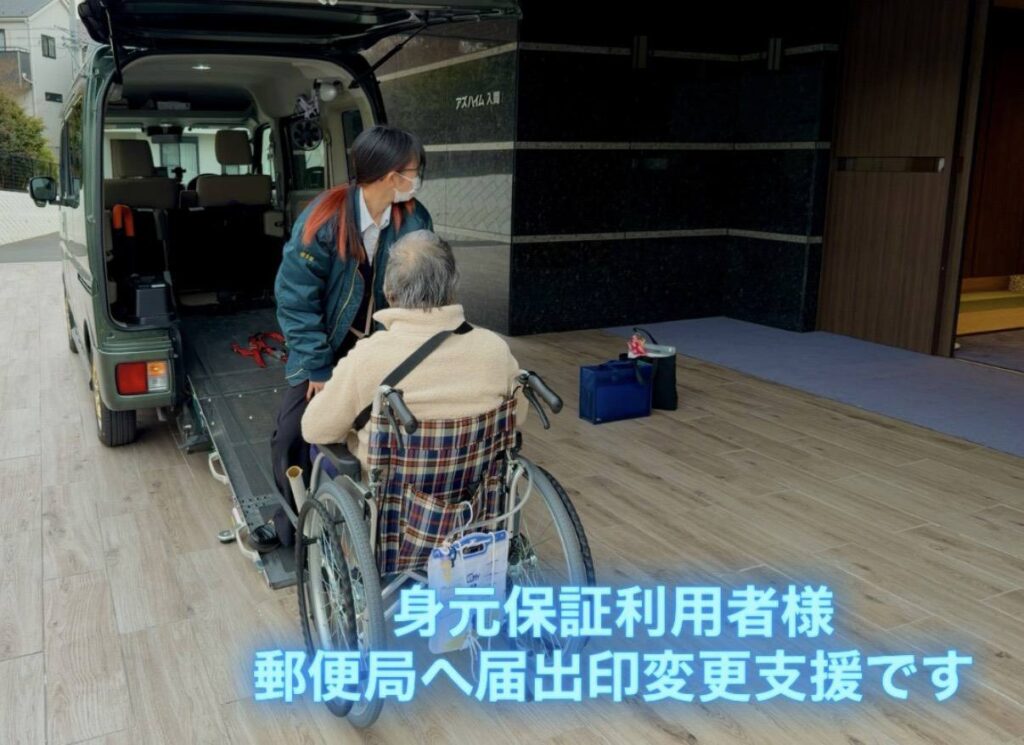 様々な用事で相談員・支援員は利用者様のために日々走り回ります 曙会は《インフォーマル福祉》の先駆けとして、フォーマル福祉では賄えない部分を得意としています この日は金融機関の印鑑相違届出と古くなったカードの再発行の支援です