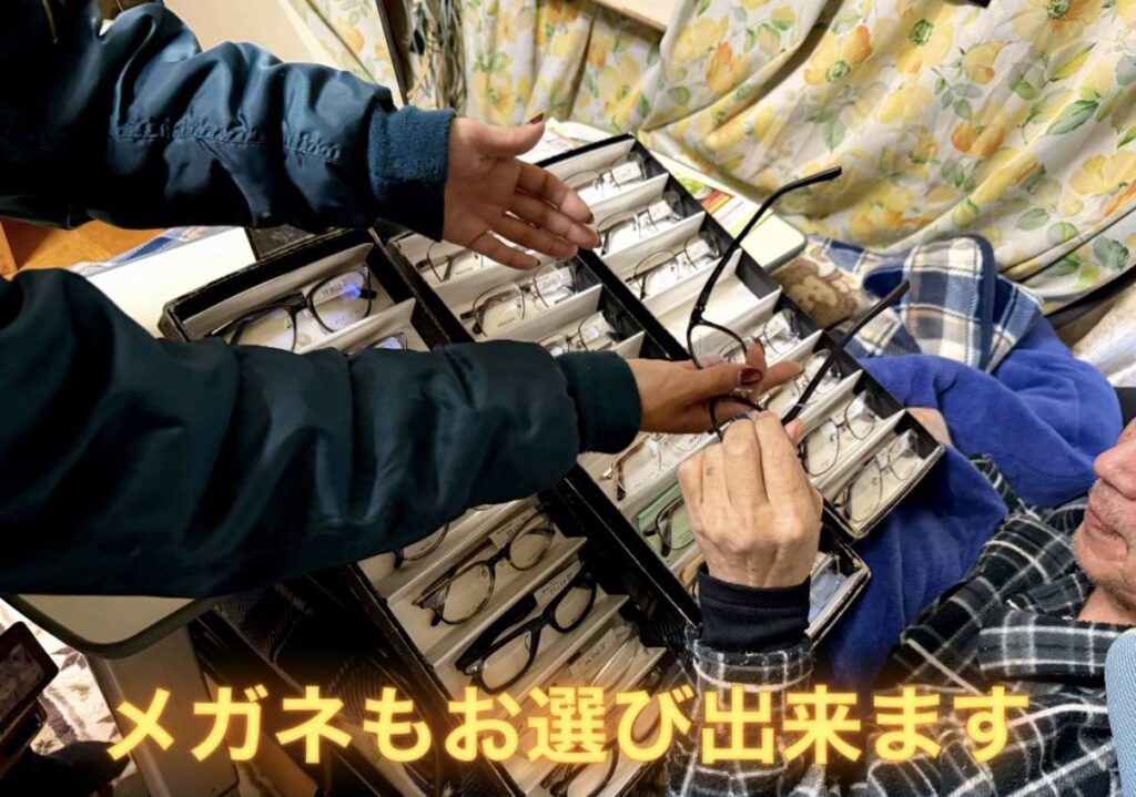 介護車両でご自宅から近いメガネ屋さんを探しているうちに、出張でメガネを作って下さる会社を秘書が見つけてくれました