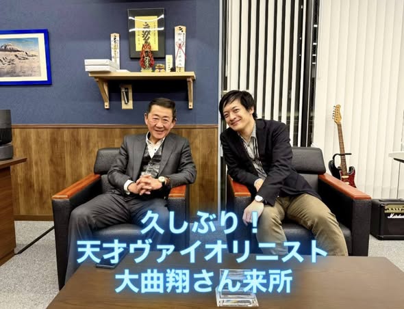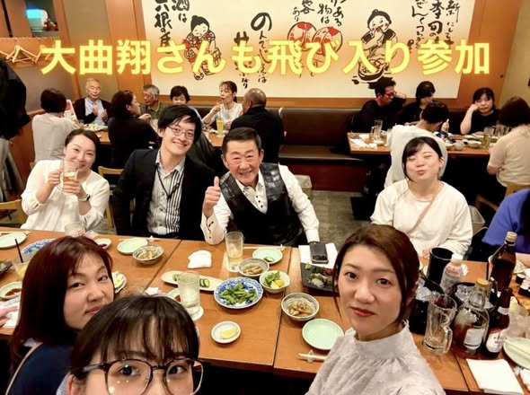 この日、天才ヴァイオリニスト大曲翔さんが久しぶりに曙会へ来所してくれて、飲み会にも飛び入り参加してくれました