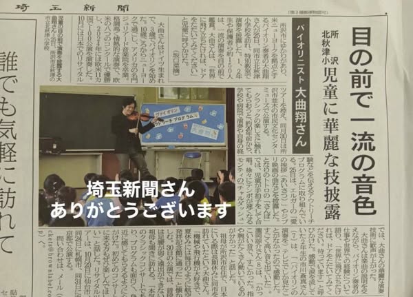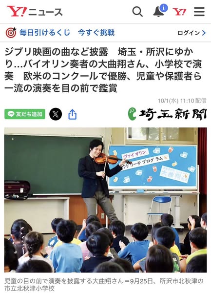 ヴァイオリンの響きが未来を照らす――大曲翔さんのアウトリーチ活動が所沢に感動を届ける
