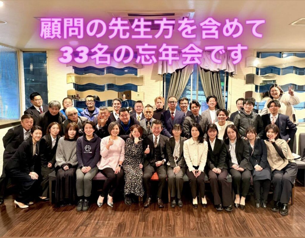 職員並びに顧問の先生方33名で、今年の活躍を感謝の気持ちを込めて楽しい時間を過ごさせていただきました