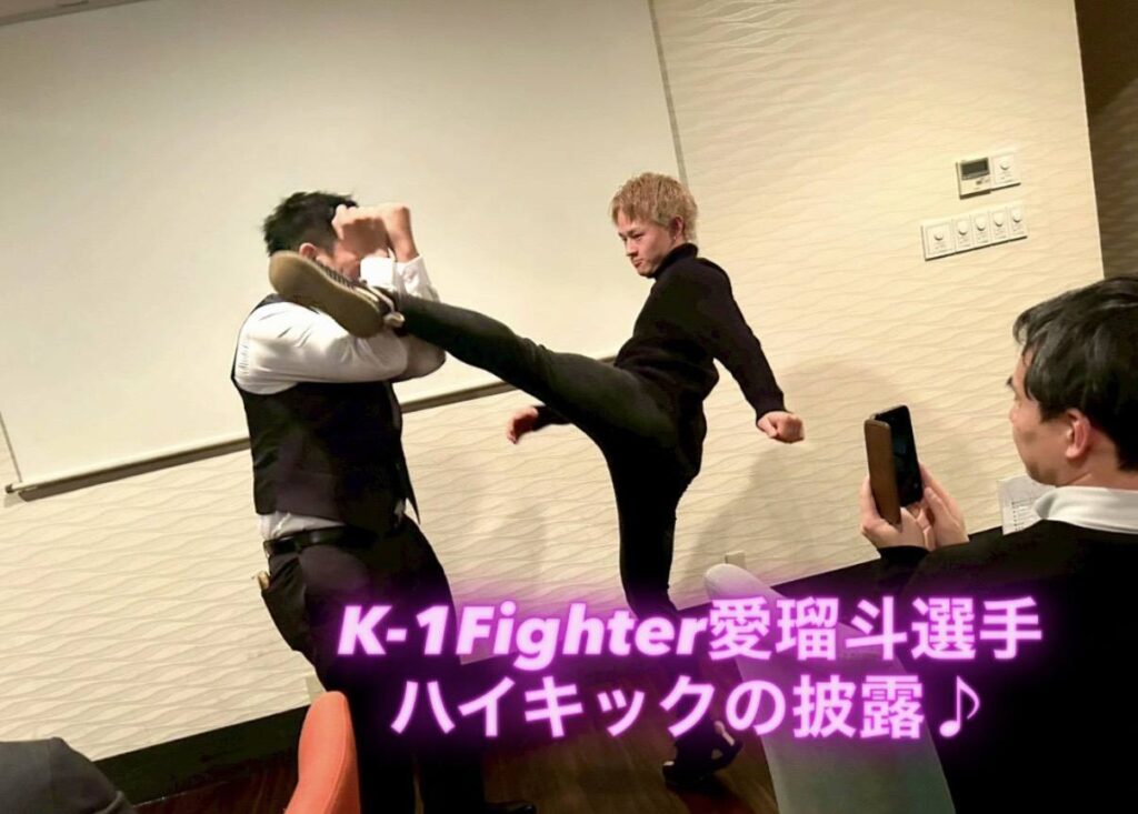 後半では女性や若者に向けたエクササイズや、心を病んだ人々へ夢を持たせるために顧問になっていただいている、K-1Fighter バンタム級 愛瑠斗選手にハイキックのデモンストレーションを披露してもらうなど、大いに盛り上がった忘年会でした!
